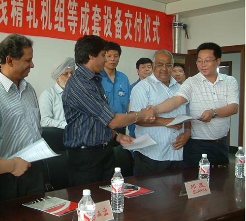 2008年8月我公司的高線精軋機(jī)組等設(shè)備成功出口印度SURANA公司,實(shí)現(xiàn)國(guó)產(chǎn)設(shè)計(jì)速度115m/s,保證速度95m/s的高線設(shè)備首次出口。